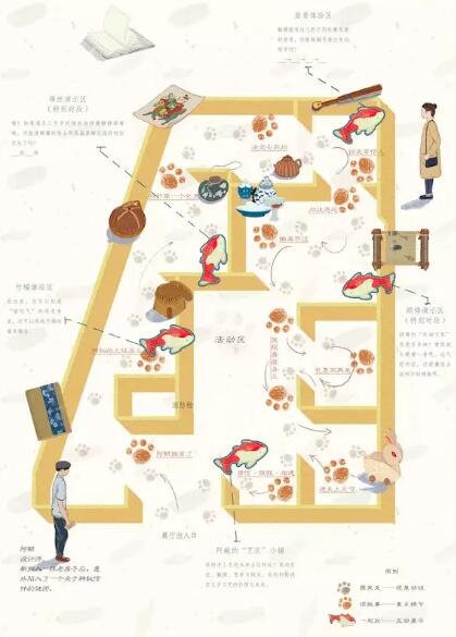 在故事的起点,①“蓝印花笔记本”(导览手册)将为你指出最初的线索,标注一路上需要留意停驻之处。