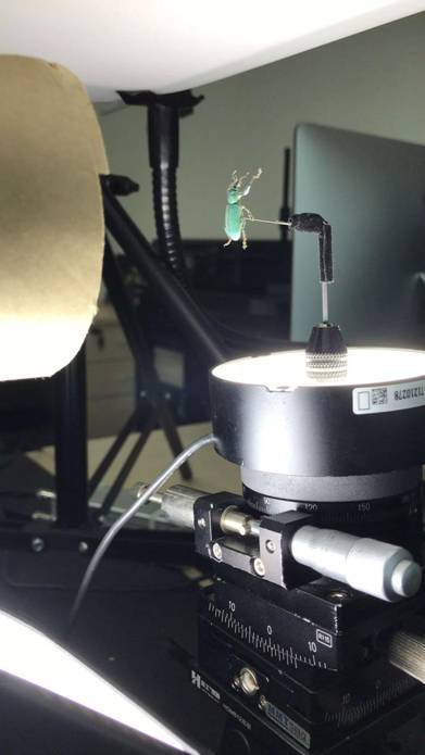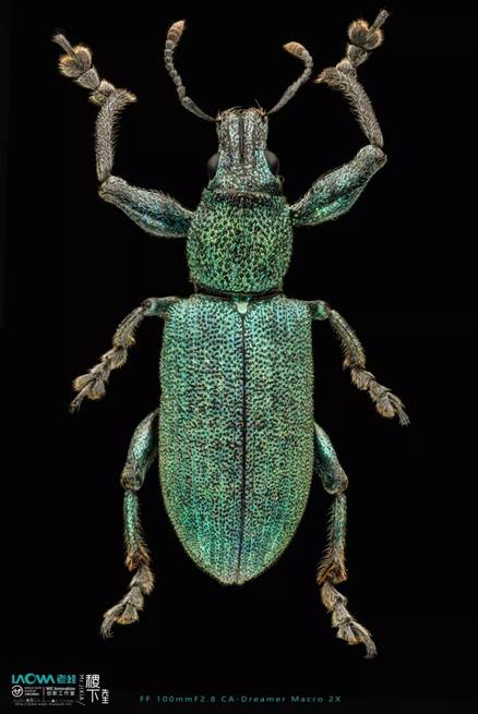 本次拍摄使用全画幅单反及Laowa FF100MM f2.8,被拍摄物为象甲科多露象属Polydrosus sp,是目前首个超过1倍光学倍率进行360度拍摄的全景深作品。
