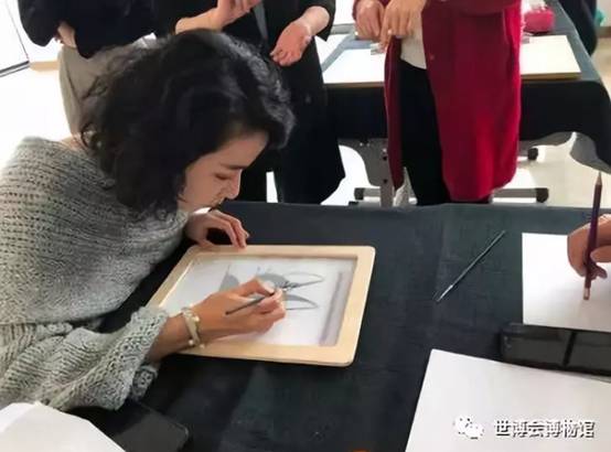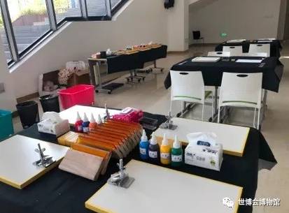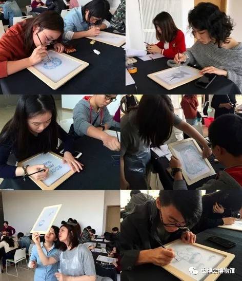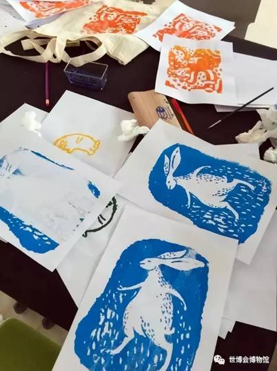 10月27日下午,世博会博物馆世博版画工作坊首次开课啦!老师选取了部分世博会历史海报,学员们以此为样板进行丝网版画印制体验,各自创作了自己亲手描绘印制的独特作品。