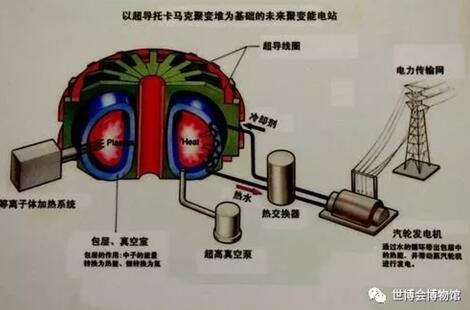 聚变是将轻核(主要是氢的同位素氘和氚)加热到数亿度高温,使其聚合成较重的原子核,同时释放出巨大能量的过程,太阳的发光发热和氢弹爆炸就是这样的原理。聚变能的特点是:第一,聚变反应释放出大量的能量,一升海水中的氘通过聚变反应可释放出相当于300升汽油燃烧的能量;第二,聚变资源储量十分丰富,地球上海水中所含的氘,如果用于氘氘聚变反应可供人类用上亿年,而用于产生氚的锂在地球上也有比较丰富的储量,可供人类用于聚变反应几万年;第三,聚变的反应产物是比较稳定且无放射性的氦。考虑聚变能固有的安全性、环境的优越性、燃料资源的丰富性,聚变能被认为是人类最理想的洁净能源。
