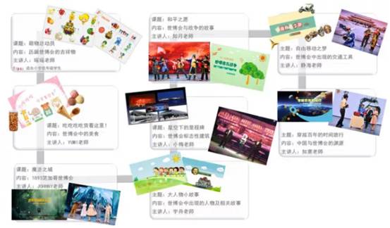 “世博小讲堂”目前共有8节主题课程,内容涉及科技、人文、历史、艺术、生活等多方面知识,通过生动有趣的小剧场、有奖互动问答、小游戏等活泼的形式激发学生兴趣,开拓学生视野。