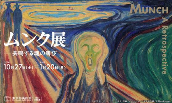 表现主义中最知名画家之一的蒙克(Edvard Munch,1863-1944),其作品《呐喊》(The Scream,1910)扭曲变形的构图和人物动态,在鲜艳的用色下显得非常地恐惧焦虑。而本系列作《呐喊》一共有四个版本。其中油画的版本即将于今年秋天,在日本东京都美术馆展出(2018/10/27-2019/01/20)。
