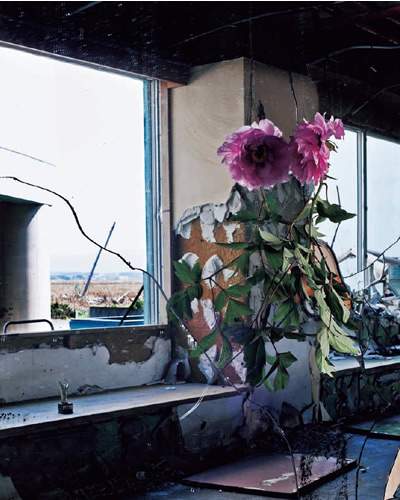 围绕着全球变暖和原子能灾难的题材也是比比皆是。就像日本艺术家片桐信片(Atsunobu Katagiri )做的花卉装置里用到了一种濒临灭绝的花卉“雨久花”,在福岛海啸过后,它奇迹般地回到了经过海啸翻卷过的土壤中。
