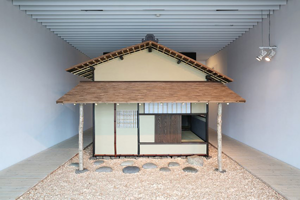 传统的日本建筑不止是人与“神”的桥梁,也是人安放自我的地方。等比例再现的千利休“待庵”是展览“日本建筑:传承的谱系”中最引人注目的项目之一。从几块鹅卵石上走到待庵跟前,脱下鞋,钻进入口的小门,里面一次只能容纳三个人。在这个做什么多余的动作就会撞上哪里的斗室中,除了小窗,几乎看不见其他东西。待庵是丰臣秀吉命令千利休建造的茶室,它的大小只有两叠,被称为“世界上最小的建筑”。在这样的斗室里,千利休泡上一壶茶,招待着一期一会的客人,小小的空间里除了主客以外,只能容下水与茶刷发出的质朴声音,却自成宇宙。