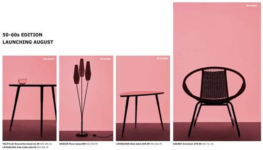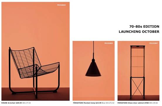 到目前为止,宜家只公布了为每个时代产品的预告图片,按照计划将在在短期内开始推出 20 世纪 50 至 60 年代的作品,在今年 10 月和 12 月分别推出 20 世纪 70 年代至 80 年代和 20 世纪 90 年代至 21 世纪 00 年代的设计作品。