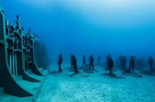 在西班牙兰萨罗特岛的海岸线14米深的水下,有一座奇妙的艺术博物馆——大西洋博物馆(Museo Atlantico)。这片海域里有300多个雕塑,是英国艺术家、潜水教练、水下自然学家詹森?迪凯雷斯?泰勒(Jason DeCaires Taylor)历时几年完成的巨大作品群。