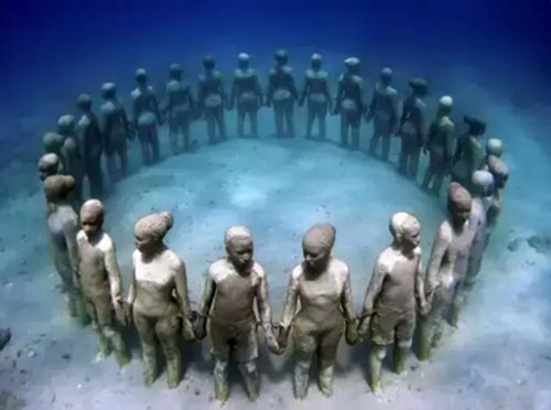 这已不是泰勒打造的第一个“海底世界”了,从2006年开始,他就尝试着在拉丁美洲的岛国格林纳达建造世界上第一个水下雕塑公园——“Moilinere海湾雕塑公园”。那是在海湾的一个角落,周围有许多岩石,深度大约在海平面25米之下,占地面积800平方米,目前拥有75座雕塑,还被《国家地理》杂志评为“世界25大奇迹之一”。