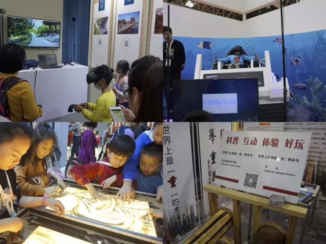 故宫博物院打造了一面“宝贝魔墙”,观众可触碰“魔墙”,随心所欲地翻转文物,查看文物的细节;南通博物苑设有VR体验区,观众带上VR眼镜,使用遥控器操纵,可获得实地参观南通博物苑之感;上海博物馆展馆内放置的六自由度模拟器吸引了众多青少年聚集,坐在此模拟器之中可进行寻宝游戏,游戏中挖出的宝物均为文物,可使青少年在游戏中获取文物知识;山东博物馆展馆内有模拟射箭游戏,许多观众聚集于此排队体验此游戏;临沂天泽木文化博物馆展区内陈列了世界上最重的木头和世界上最轻的木头,可供观众提拉体验木头的重量;冰心文学馆特设一个儿童可触及的沙画体验台,许多儿童都聚集于此体验沙画创作的魅力。