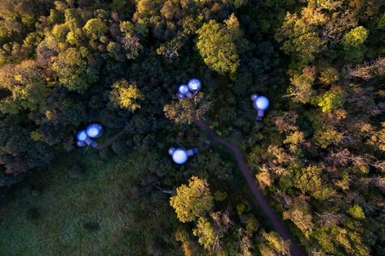 bubble domes成功地将野营活动回归自然的特权与豪华酒店的舒适体验结合在一起,让住客有机会在享受地板供暖和定制家具的同时在漫天星光下安眠。