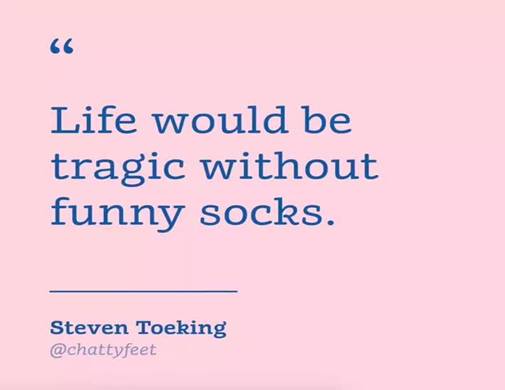 除此之外,每只袜子都有话要说,他们都被配上了该名人语录改编的 ChattyFeet 版语录,皮得很。