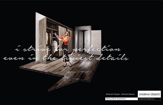 其次,广告摄影的构图还要注意视觉上的均衡与完整,使画面形成既生动又和谐,既有变化又统一的视觉美感。“横看成岭侧成峰”,简单的视角变化也会带来别样的视觉体验,独特、新颖的构图在于对拍摄方向、拍摄距离的不断变化。另外,点线面的组合、图形的排列也可为视觉营造特殊氛围,在广告摄影中常被用来强化某种商品的特殊属性,令人印象深刻,也是常用的构图手法。