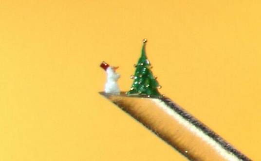 俄艺术家阿尼斯金在罂粟籽上制作出微型书。(来源:新华网)