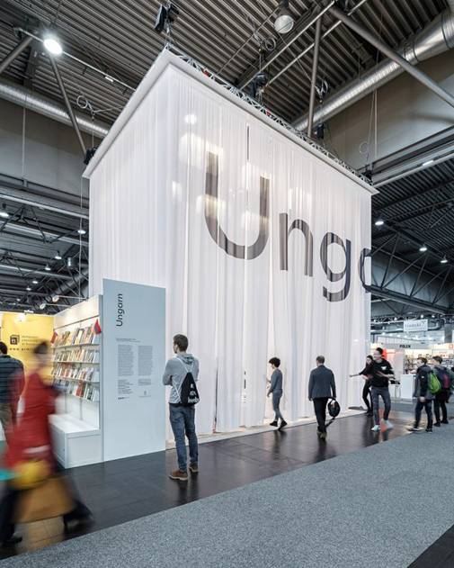 每年夏天在横跨几千平方米的莱比锡书展中,都会有众多最新匈牙利本土书籍的德文译本展示在这个不过十余平的展台。每年 Collegium Hungaricum Berlin 文化机构都会委任设计师根据展览主题设计独特的展陈形式,用实验性的方式展现书展的特有氛围。在此次书展的匈牙利馆由 Hetedik M?terem 设计,该展馆是对包豪斯学派的一百周年纪念之作。