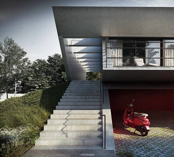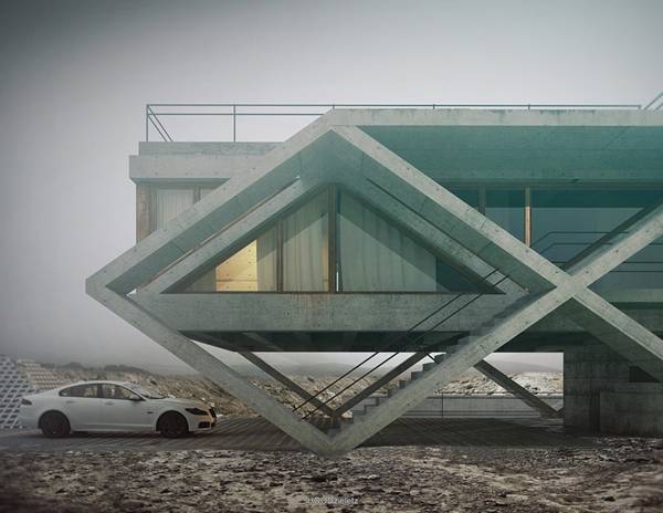 在国外设计师HOODzielec的博客上,我们发现了大量渲染习作。这些建筑大多是作者臆想出来的房子,不过却可以从其中一些看出一些大师经典建筑的影子,例如柯布西耶、安藤忠雄等。