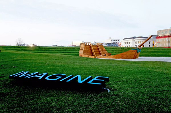 感谢策展人Lance Fung,一艘仁慈的“海盗船”在红木城定居。艺术家Ilya 和 Emilia Kabakov的大型船只装置(附近有“IMAGINE”一词)将为该地区的公共艺术带来新的重点。Fung -他是2006年都灵奥林匹克运动会策划雪地装置秀的著名人物-与他的合作伙伴Bay Area一起为湾区的许多公共项目工作。在接下来的一年里,他希望委托艺术家Kiki Smith,Daniel Buren和Robert Barry创作作品,继续他的“移民”项目,这是旧金山湾小径沿线的一系列展览。
