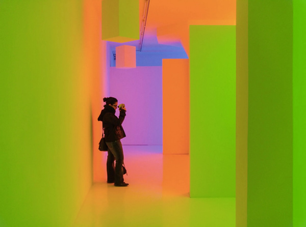 2015年澳大利亚当代艺术博物馆Carlos Cruz-Diez的“灯光秀”的装置图。SCAD艺术博物馆的一项新作品将继续其“色彩饱和度”系列。图片来源:纽约时报