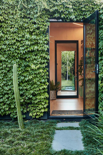 来自澳大利亚墨尔本的Matt Gibson Architecture + Design工作室设计了一座被绿色包裹的小木屋。木屋的主人是一位当地的女作家,这里将作为她独自的创作空间。整座木屋被爬藤爬满,看上去毛茸茸的,只露出一面大大的玻璃窗。作家的工作台位于窗前,整个房子就像由叶子构成的一般,非常具有童话效果。