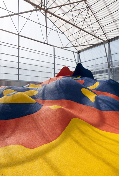 这座占地98平方米、高3.5米的“山丘”基于一个木制框架搭建而成,其表面覆盖以EPDM橡胶颗粒。这一介于游乐场和艺术装置之间的作品为公众创造了一个自由的互动空间,穿行于波动的“山丘”间,每个人都将找到一份属于自己的乐趣。