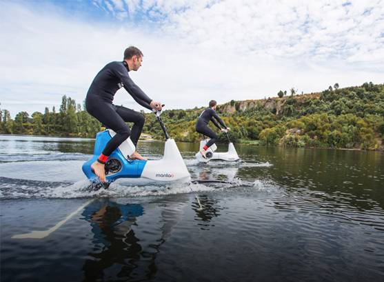 自行车设计师Roland Alonzo推出世界第一款以电动辅助踏板式的水翼自行车Manta5。与陆上电动自行车一样,骑手可以根据他们自己的情况来调整所提供的电力援助。