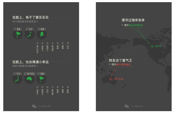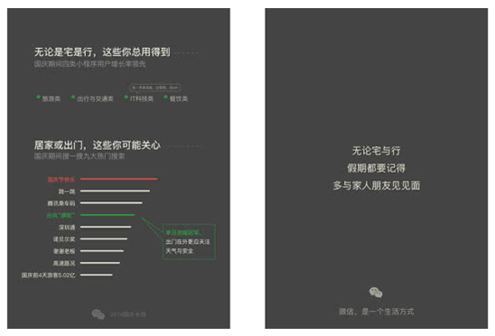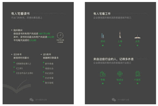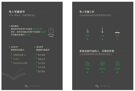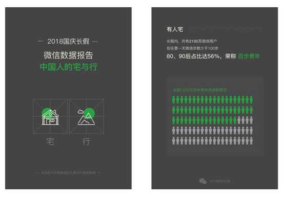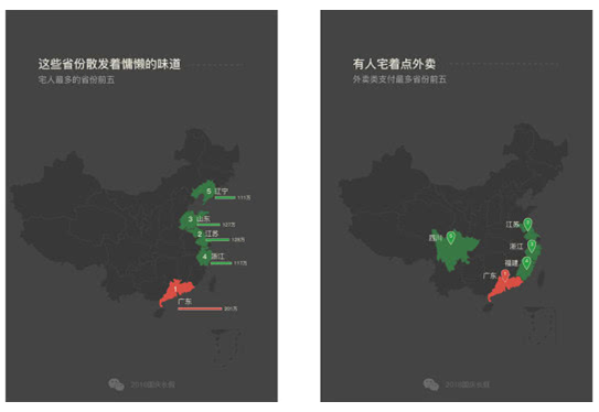 报告还显示,除了宅,此次报告还从朋友圈签到、境外支付免单等方面展示了国庆期间微信用户的出行状况。
