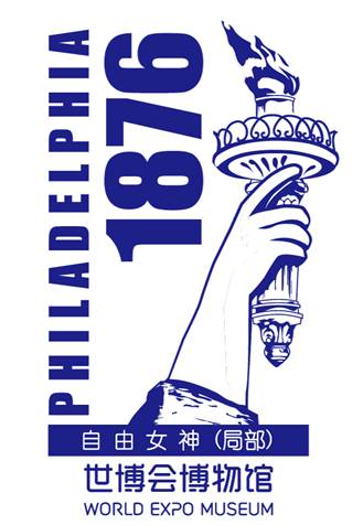 印章的图案是自由女神紧握火炬的右臂部分(1876年费城世博会)。