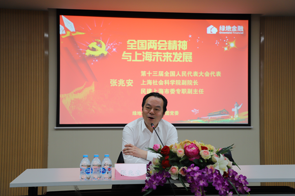 本次党课邀请了第十三届全国人民代表大会代表、上海社会科学院副院长、民建上海市委专职副主任张兆安先生作题为“全国两会精神与上海未来发展”的专题辅导报告。张教授从目前国际政治经济形势展开,向大家介绍了我国面临国际、国内经济环境,尤其是上海所面临的挑战和机遇,就国家相关经济政策做了深度解读以及预判,并结合当前热点问题对房产、金融等相关行业做了重点解读。张教授讲课内容干货满满、针针见血,授课方式风趣幽默、深受喜爱,不时赢得满堂喝彩,对大家把握当前学习贯彻习近平总书记重要讲话精神,深刻理解精髓要义提供了价值极大的参考。
