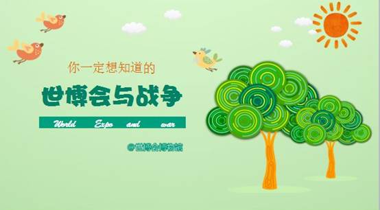 What is the Expo?What is a war?How are World Expos related to wars?We can review World Expos together with wars that occurred at the same time. From the American Civil War to World War I and then World War II, and finally the Iraq War, wars have challenged World Expos which, however, have still persisted and developed so far.Such a review will help people to shift from worship of things to care for people, from the desire to conquer nature to the respect for nature, from pursuing growth to promoting sustainable development.
