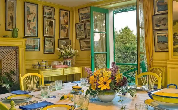莫奈在吉维尼小镇住宅的墙壁上挂着的浮世绘作品