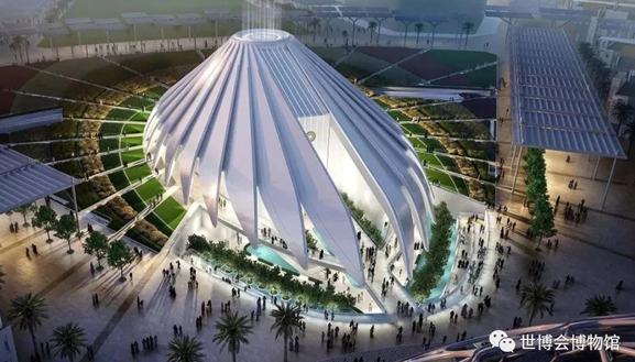 迪拜世博会主题馆是由三个代表机遇、流动和可持续发展副主题的展馆构成的。