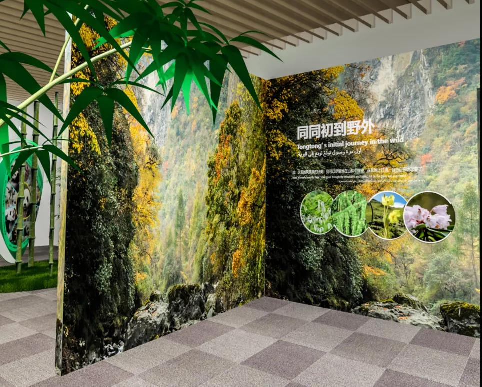 此次展览以中国馆吉祥物-大熊猫“同同”为主角,以“同同”成长日记为主要脉络,展示内容包括圈养大熊猫有关情况、圈养大熊猫野化培训与放归情况、大熊猫国际合作与交流情况、野生大熊猫有关情况、大熊猫国家公园等六个板块。
