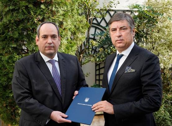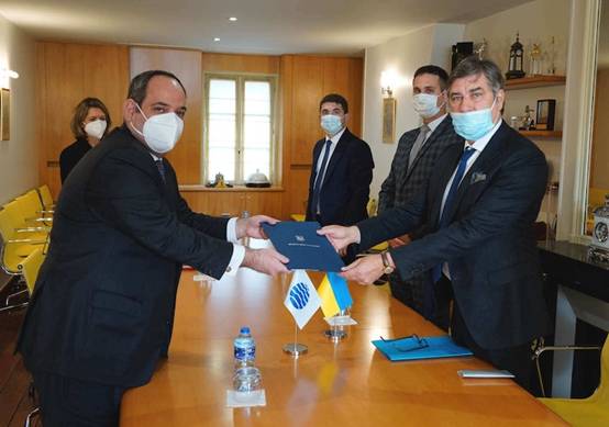 该申请书由乌克兰总理杰尼斯·什梅加尔签署,由乌克兰驻法国大使瓦迪姆·奥梅利琴科递交给国展局秘书长迪米特里·科肯彻斯。