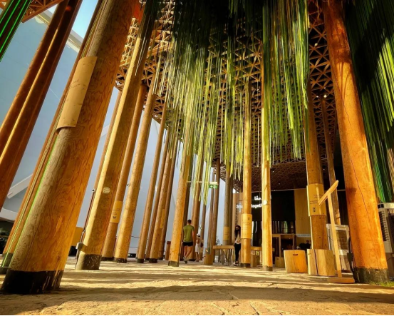 馆内所使用的所有建筑材料和生物材料均未加工,在世博会结束后会直接拆除回收并重复利用。