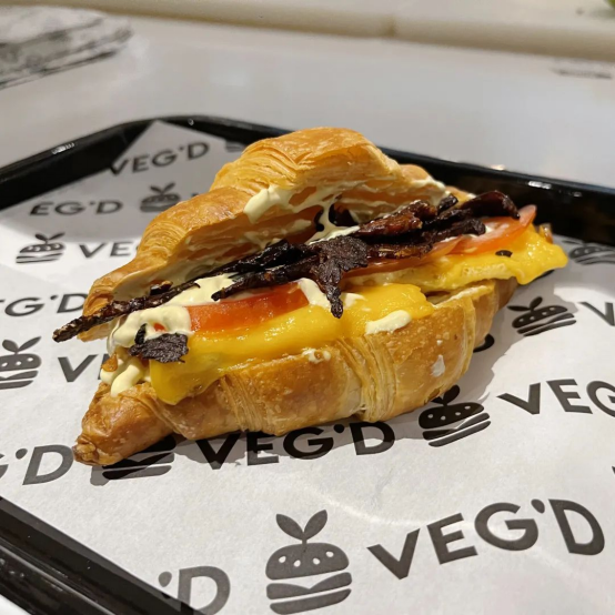 羊角面包配纯素培根、番茄、纯素奶酪和酱汁