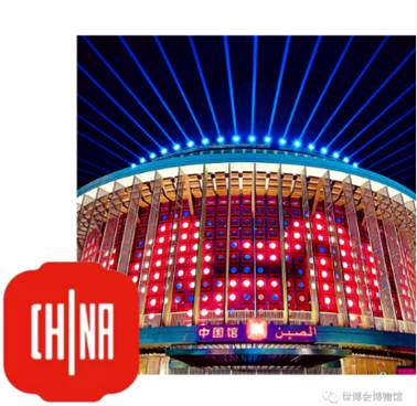 中国馆标志寓意世界各国和平发展、繁荣与共,也是共建人类命运共同体的美好祝愿。