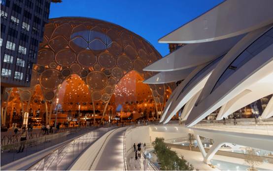 于2022年10月正式开幕的迪拜世博城(Expo City Dubai)保留了世博会80%的基础设施、各种标志性建筑,成为迪拜永久的宝贵遗产;新的生活和工作中心,也在这里逐渐长成。