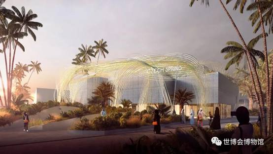 2020迪拜世博会捷克共和国馆以“捷克之春(Czech Spring)”为主题,这里Spring有双重含义,不仅指捷克人最喜爱的季节,而且还有“捷克之泉”的意思。该馆位于永续区,由Formosa AA设计,建筑面积为2200平米。