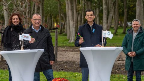 2022年阿尔梅勒世界园艺博览会首席运营官斯文·斯蒂马奇同阿尔梅勒和平花园创始人阿莱蒂尼·图哈米于园艺现场签署了意向书。