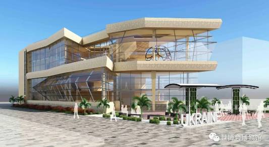 乌克兰馆属于自建馆,位于机遇区,建筑面积1652平米,设计与建筑均由ASGC Construction LLC——阿联酋知名的建筑设计企业承担。该馆在设计上取乌克兰特色的露台为外形,参观者在观展后还可以通过这些露台,惬意地观赏这一美丽国家的自然美景和植物群。
