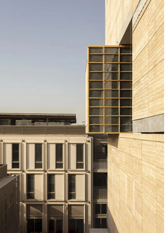 如建筑师本人所说「我们是从中东图案和日本几何外观中,观察到两者的相识之处,探索出这种新型三维几何格架的建筑立面,用于环境和建筑之间形成过滤效果。」