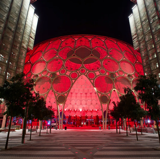 Al Wasl Plaza便成为各个场馆的重要衔接建筑物,串起6个不同的主题区,表达将把不同背景的人们聚集在一起达到"连接心灵"的精神寓意。