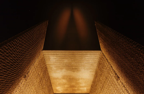 结合世博会的可持续发展理念,整个网状结构在傍晚的朝霞映衬下,一副艺术化的建筑形式呈现眼前。也标志着迪拜以东道主的身份,喜迎全球贵客的敞亮感。