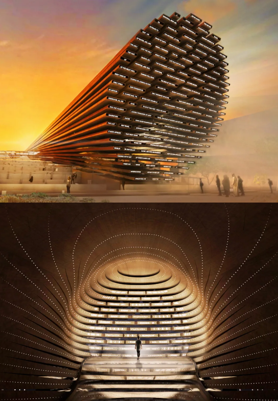 于是,整个阿联酋国家馆便采用猎隼的翅膀元素,将外观设计得通体白净,层次分明,威风禀禀,气势上展现得淋漓尽致,也充满着对未来的野心。