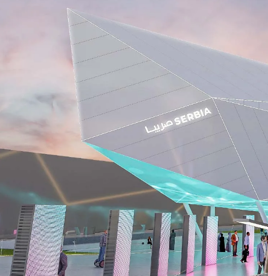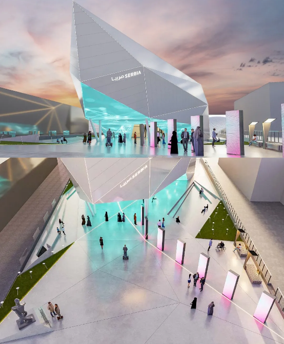 塞尔维亚作为小国代表之一,占地2000平方米的「玻璃胶囊」展馆设计让众人眼前一亮,璀璨的几何晶体造型和创意十足的线上数字化展厅,象征着从传统新石器时代的维尼亚文化到塑造未来的智能科技。