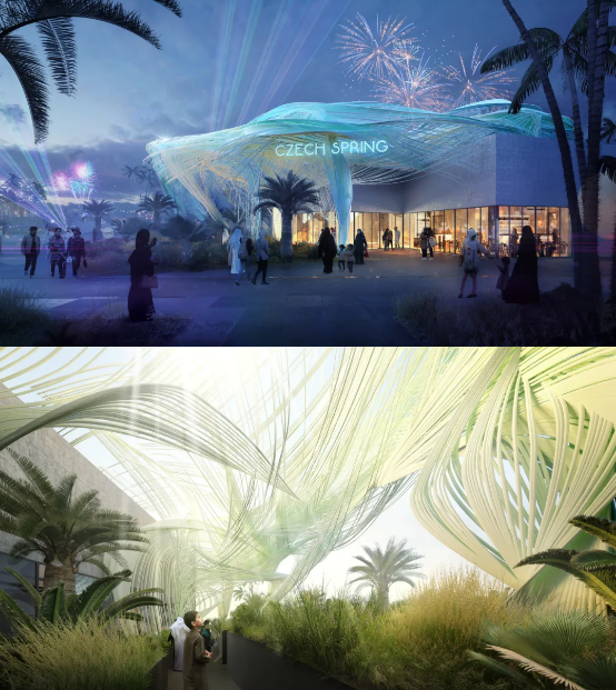Formosa AA设计事务所将此项专利融入到场馆设计当中,以从种植沙漠的花园中生长的有机云结构为主题,向游客发出一次探索生态的邀请之旅。