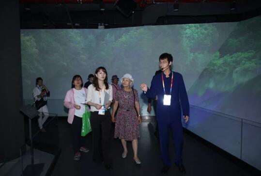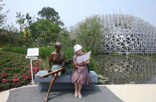 在永宁阁,“世博奶奶”登高望远,目光所及之处,蓝天白云,青山绿水,花团锦簇,宛若一副秀美画卷。在植物馆,“世博奶奶”穿行如“万花筒”一般多彩奇妙的植物世界,饱览各色奇花异草,欣然写下“绿意盎然之处,人与自然之和”的寄语。