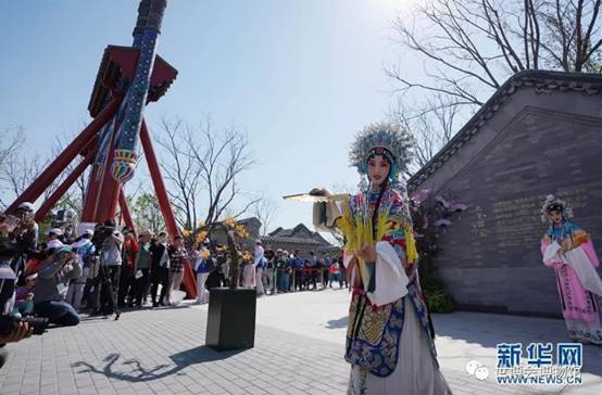 演员在北京世园会园区表演(4月29日摄)