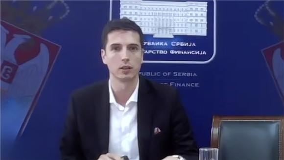 图:2027年贝尔格莱德专业类世博会主办实体首席执行官杜尚·博罗夫恰宁在大会上发言