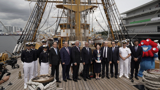 2025年大阪关西世博会意大利馆在历史帆船“Nave Amerigo Vespucci ”号世界巡游东京站之际亮相