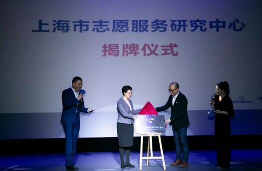 市文明办副主任唐洪涛、上海社会科学院党委副书记王玉梅为上海市志愿服务研究中心揭牌