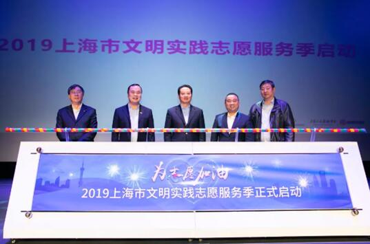 市委宣传部副部长、市文明办主任、市志愿者协会会长潘敏,团市委副书记、市志愿者协会副会长邬斌,徐汇区委副书记钟晓咏,上海东方广播中心主任翁伟民,市志愿服务公益基金会理事长陈振民,启动“为志愿加油”——2019上海市文明实践志愿服务季。